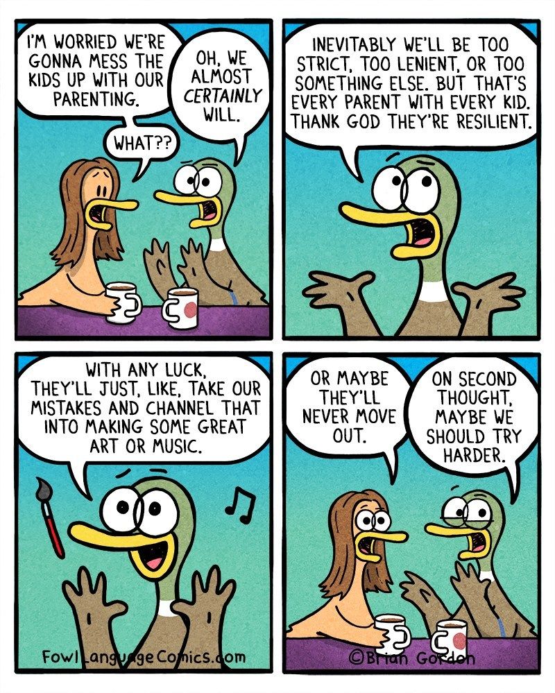 Arrêtons de culpabiliser les parents avec l’éducation bienveillante ou tout doit se faire dans le seul intérêt de l’enfant : Il vaudra toujours mieux une maman qui donne le biberon en souriant a son enfant qu’une qui se sacrifie et allaite en serrant les dents et en pleurant de douleur ! Ce serait formidable de nourrir nos enfants exclusivement au bio et selon leurs gouts, mais dans la vraie vie c’est difficile et c’est cher. « La cantine c’est pas bon ! », oui mais c’est fédérateur, ça crée des anticorps et ça fait apprécier la bonne nourriture de maman le soir !