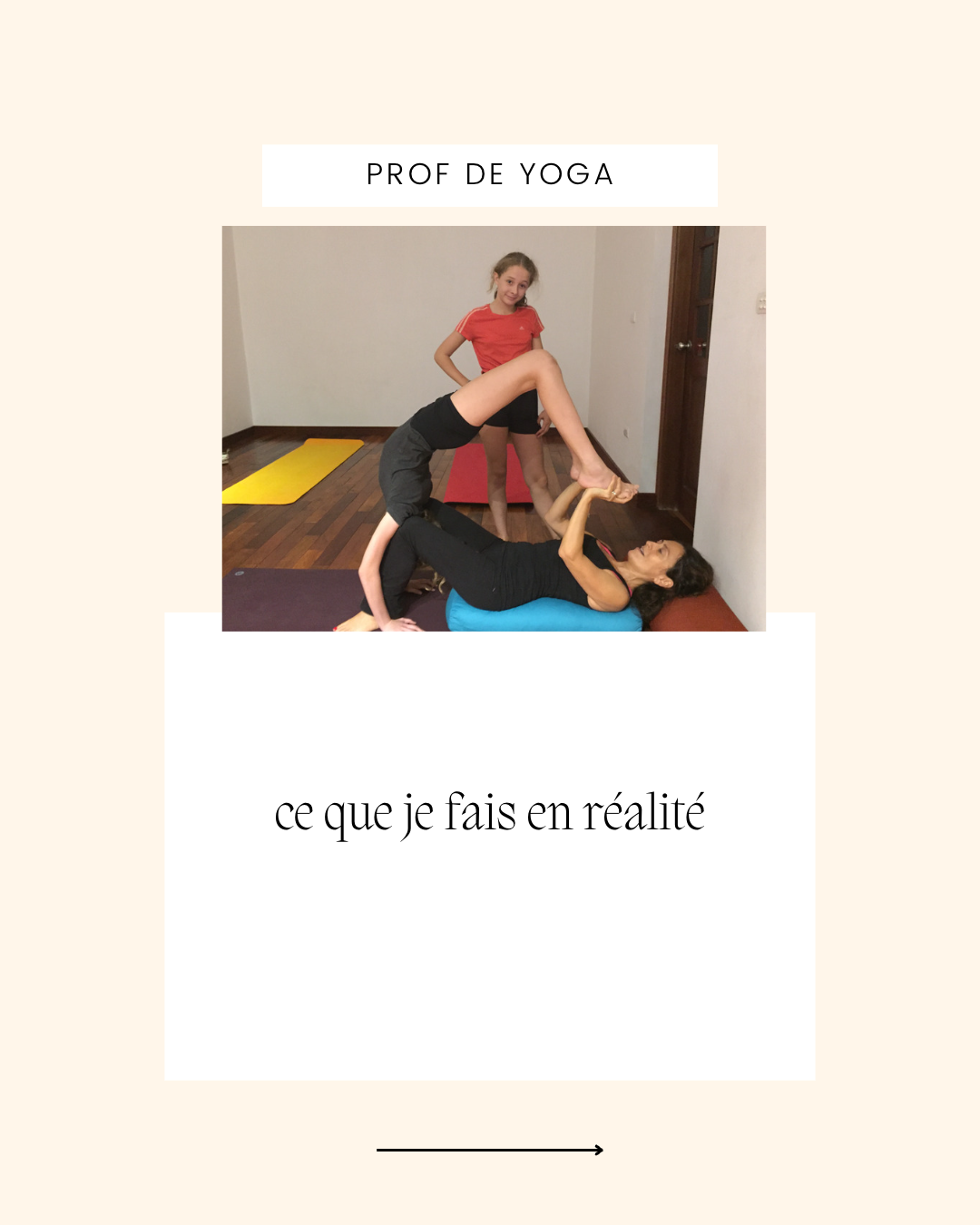 Figurez vous que les profs de yoga sont humains et notre anatomie de nous permet pas d’effectuer toutes les poses instagrammables. Il y en a de toutes formes et la longueur de nos bras et de nos jambes ne nous permettra pas d’effectuer certaines poses. Autre frein: nos intérets 😉 mais je sais que personne ne m’aimera moins si je ne maitrise pas la pose de la luciole. Entre autres.